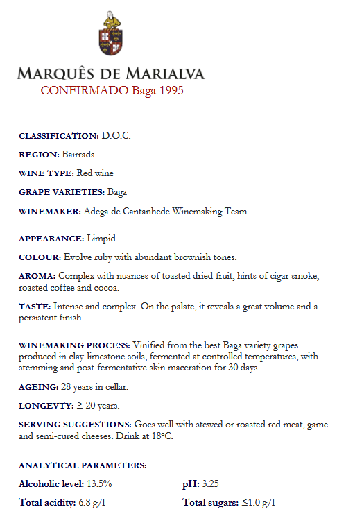 MARQUÊS DE MARIALVA D.O.C. Bairrada „CONFIRMADO” Baga 1995